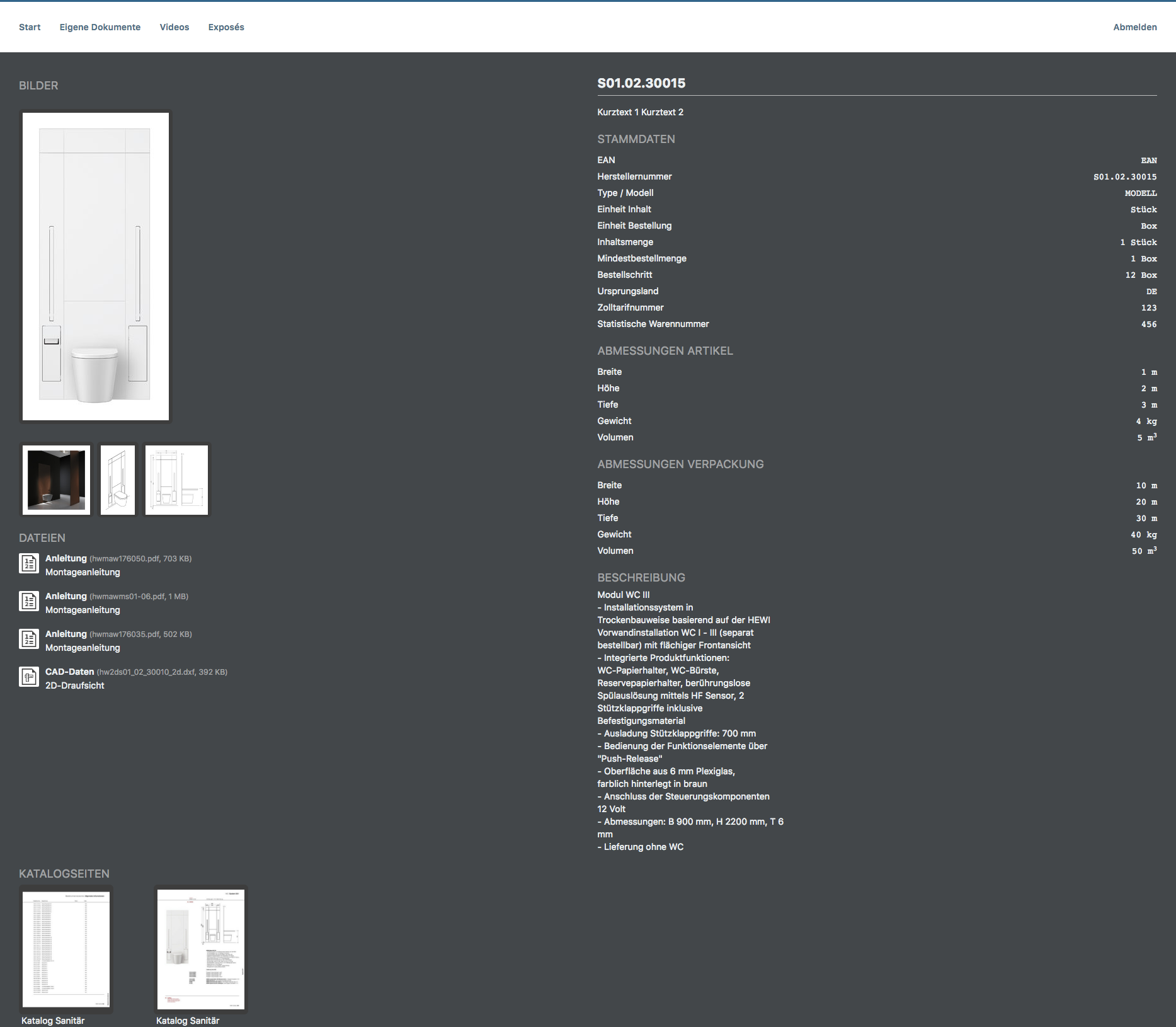 automatisch ein Link zu einem von OXOMI automatisch erstellten Datenblatt geliefert. Dieses stellt die