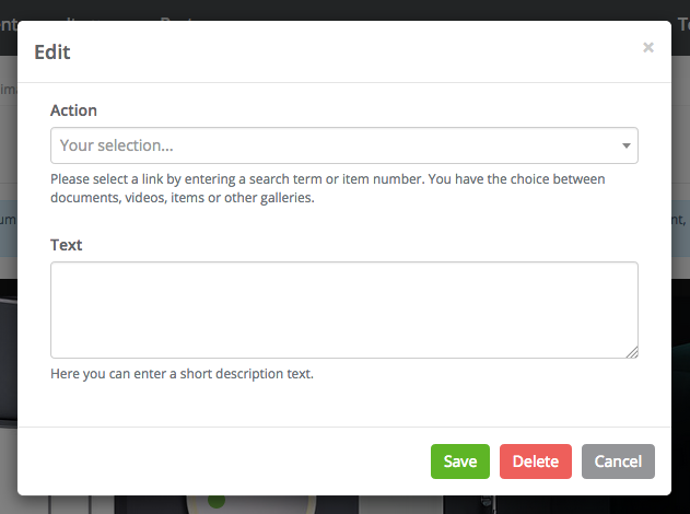 With a click on "Edit", you will be taken to the individual view of the image. There you can simply link any content or item you have provided. Just click where you want to place the link. If necessary for further explanation, you can add a short description as well