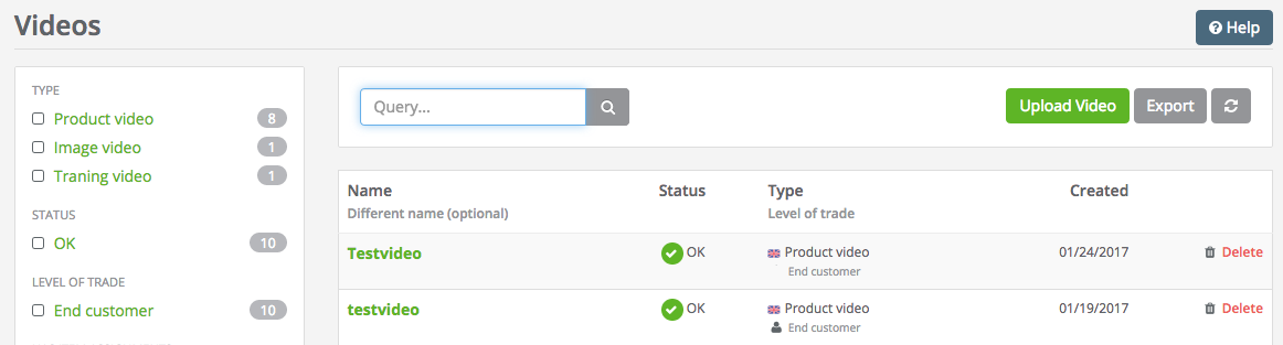In the video overview the video is now already listed with the status “Processing”. When processing is complete the status should have changed to “OK”.