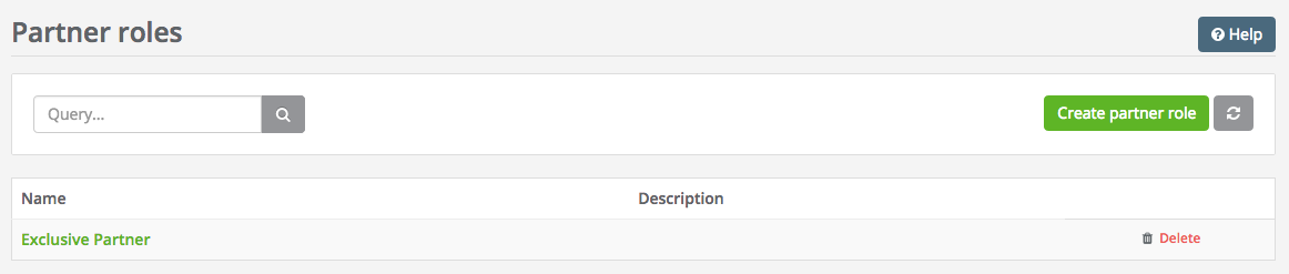The "Partner" menu is located in the navigation bar. Within the item "Partner roles" you can create new partner roles, control the roles which are already created as well as edit them.