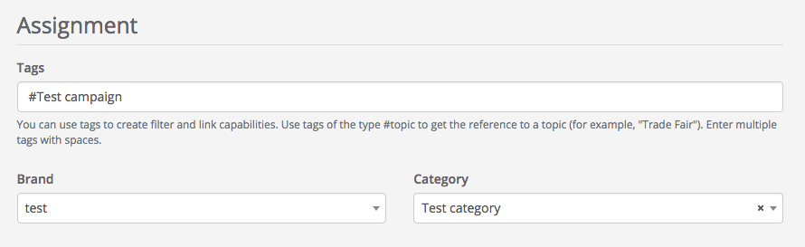 In both cases, you can now find the previously created category under "Assignment", which now can be selected for the respective document.