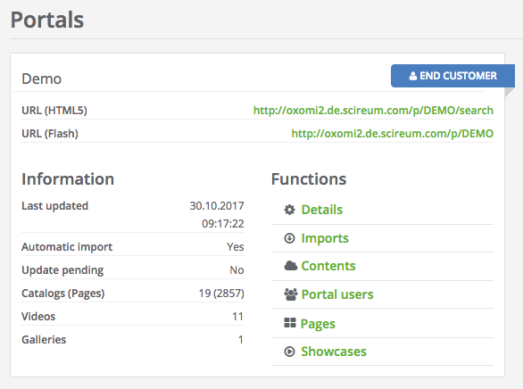 In individual cases, automatic imports may not be practical for a portal. For example, if a portal is intended to be used primarily for own documents, or only a few brands. If you would like to have a portal without automatic imports, please let us know by e-mail to: support@scireum.net.