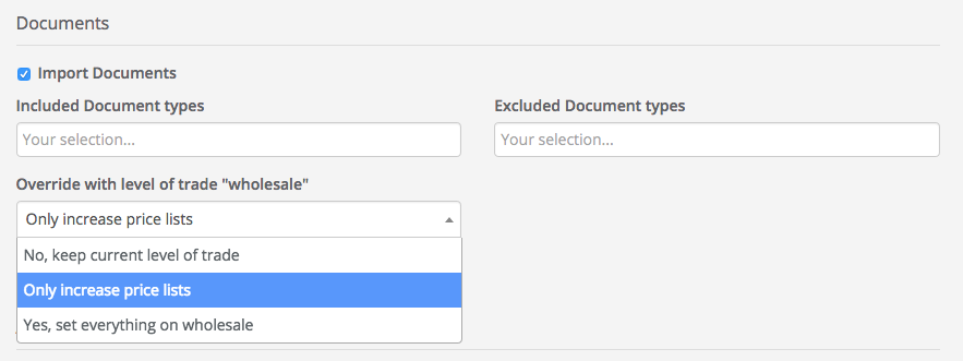 end customer. Documents with the level wholesale won't be imported into this portal.