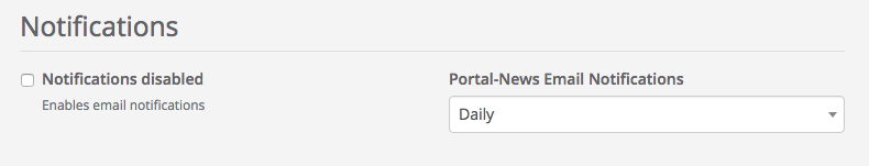 In the "Notifications" area, you can control how this user is notified by OXOMI. It is possible to deactivate notifications completely and to control the rhythm of the portal news. The latter can also be deactivated in this setting.