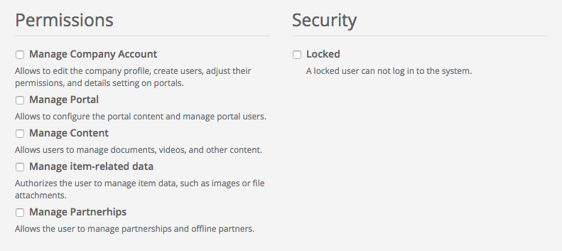 In the "Permissions" area, you can control which rights this new user should receive. Please read the respective help page Permissions.